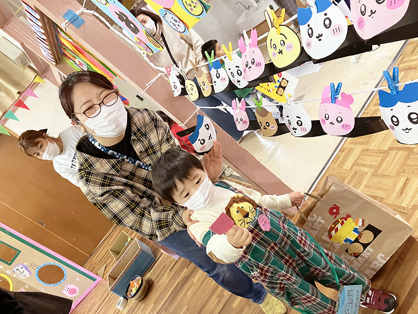 その後はみんなで、豆の代わりに卵ボーロとお煎餅を食べて楽しみました。