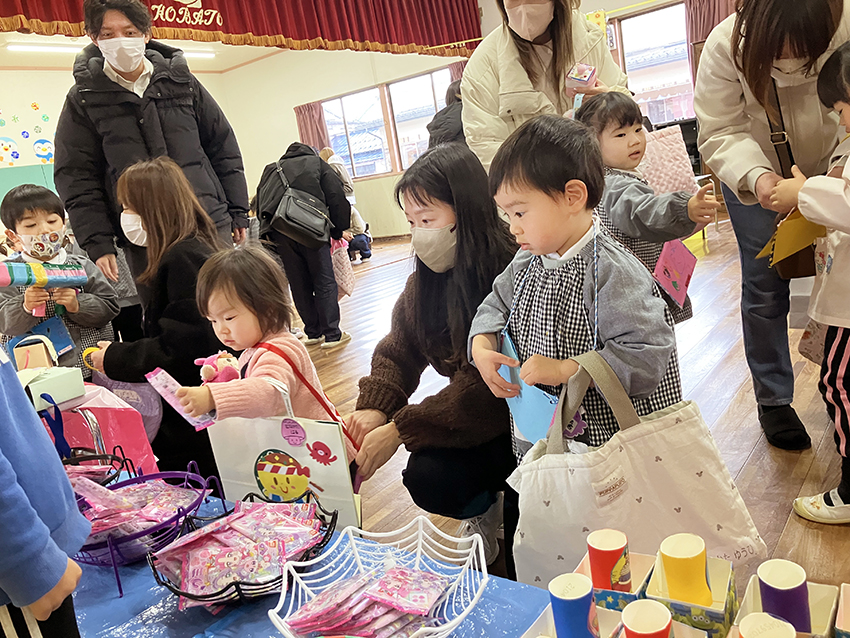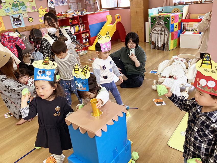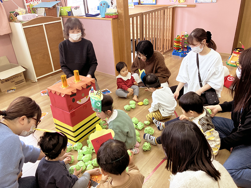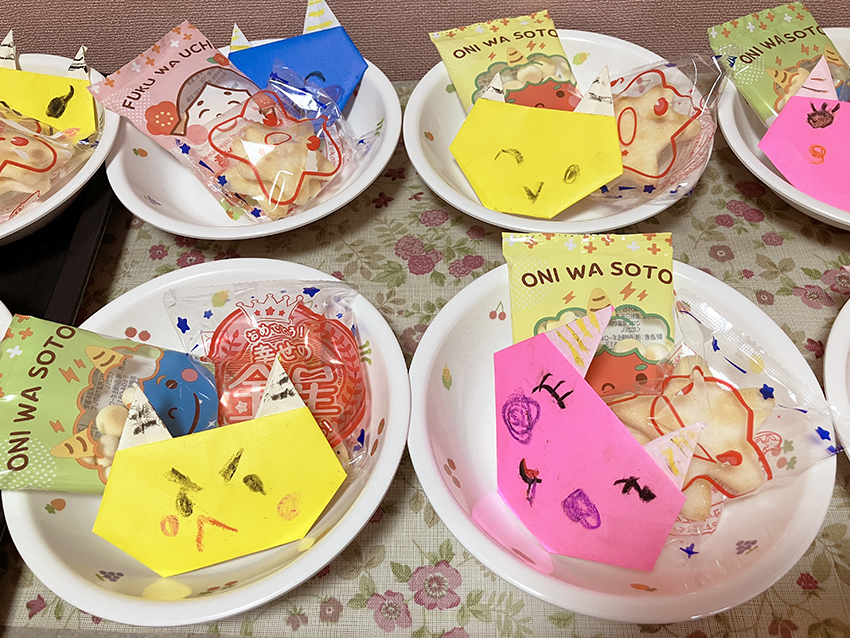 その後はみんなで、豆の代わりに卵ボーロとお煎餅を食べて楽しみました。