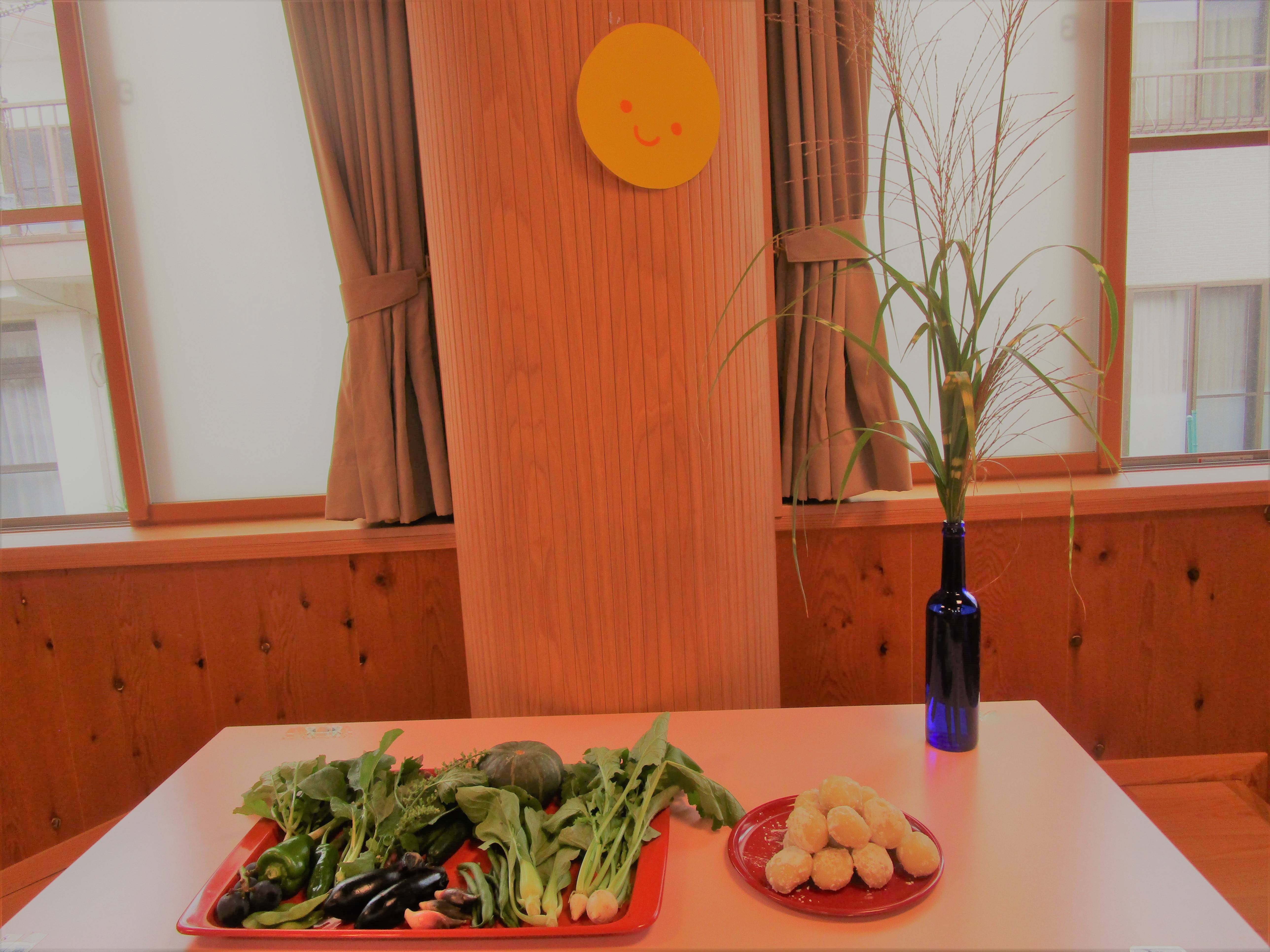 秋の収穫の感謝を込めて、収穫した物を月にお供えしました。