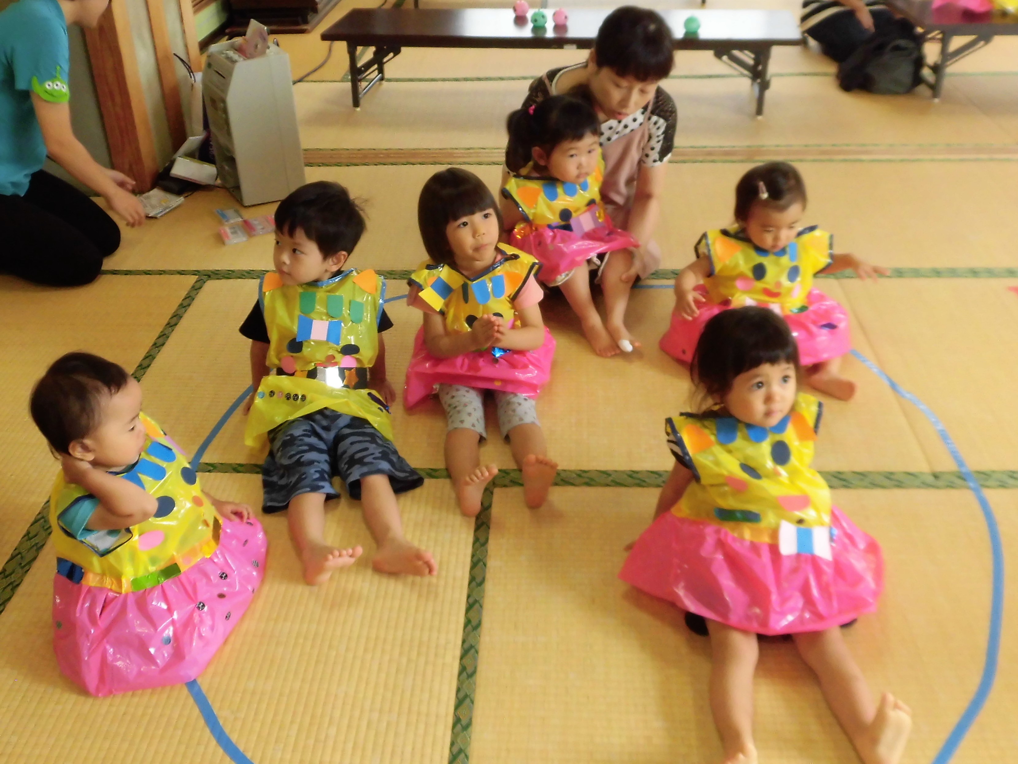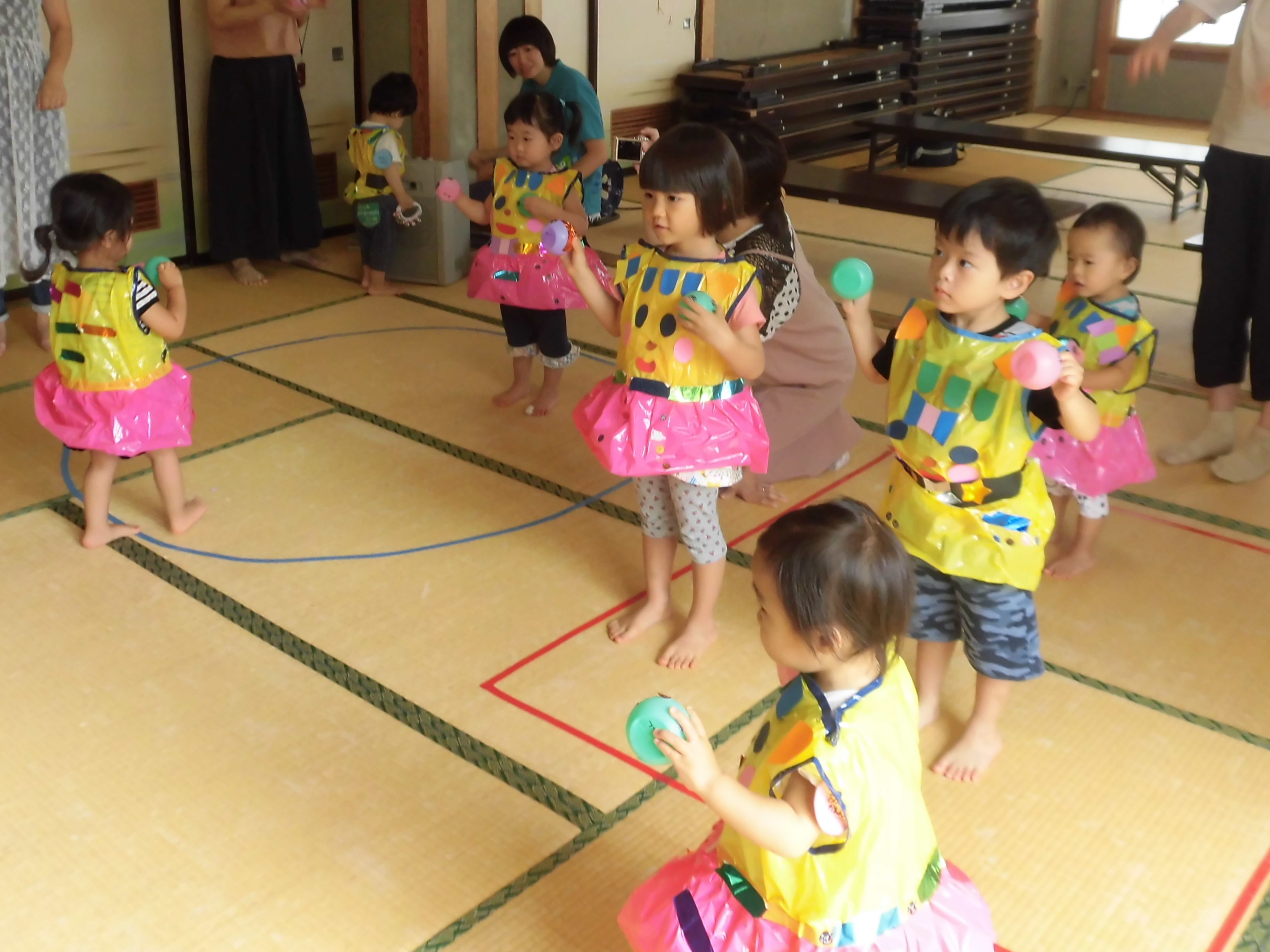 おもちゃのチャチャチャ♪やエビカニクス♪、バスに乗って♪の曲に合わせて果物マラカスを振って、ステキな時間を過ごしました☻