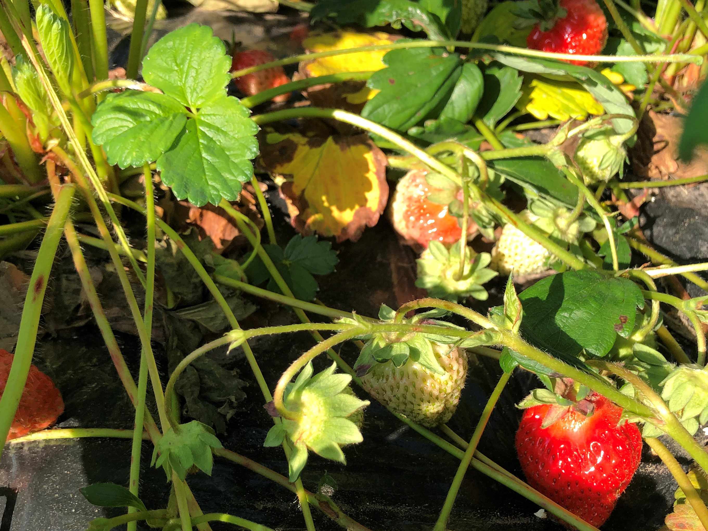少しずつ畑のイチゴが色付いてきました♪ もうすぐいちご狩りもできるかな?