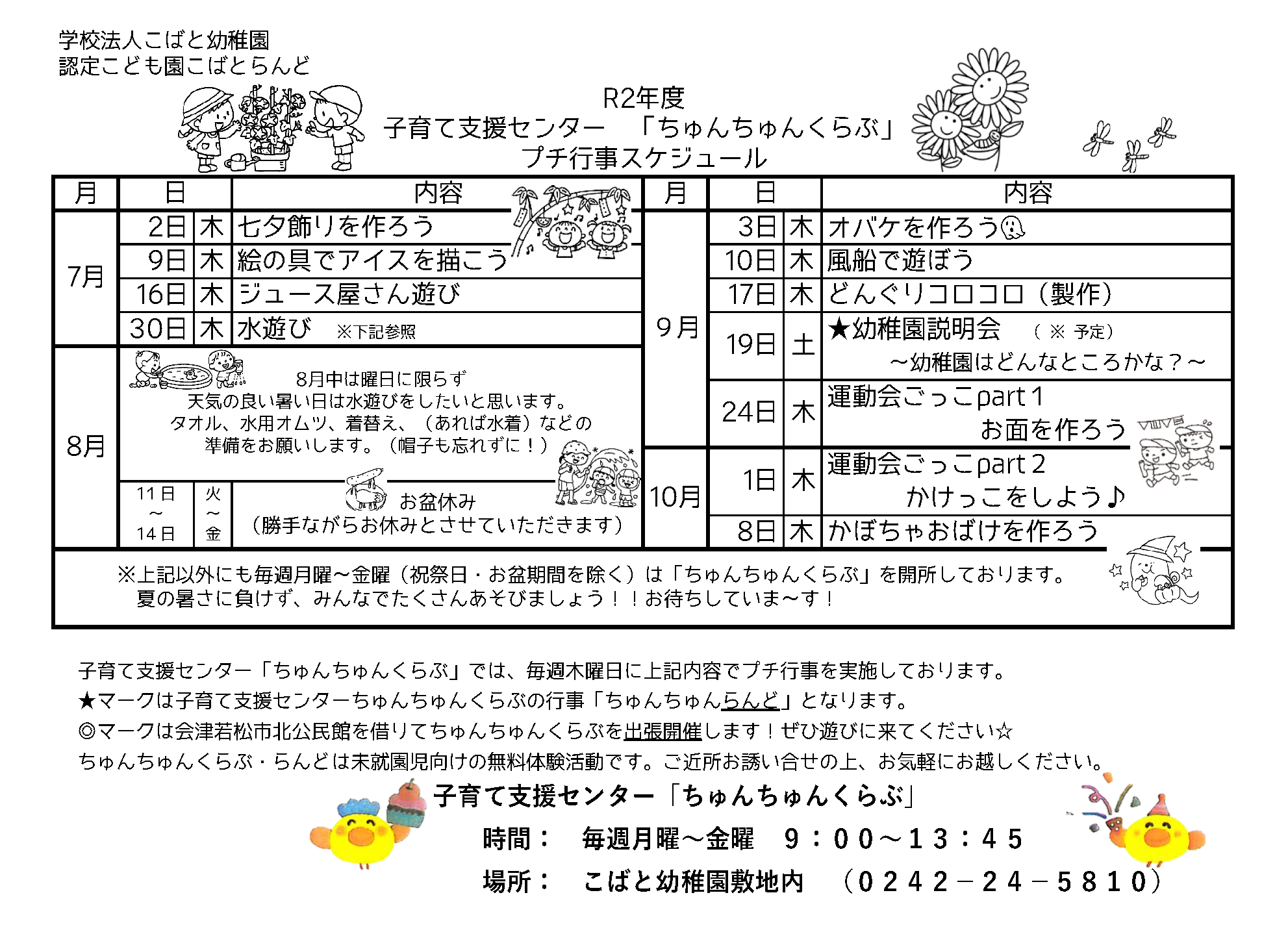 ご不明点等ありましたら、お気軽に園(0242-24-5810)までお問合せ下さい。